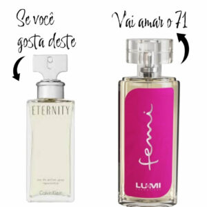 A inspiração do femi 71, o Eternity, simboliza o amor duradouro. Assim sendo, esta fragrância é um convite à reflexão sobre a eternidade dos sentimentos. Em particular, sua composição clássica e sofisticada evoca uma sensação de paz. Certamente, ele transmite muita calma.